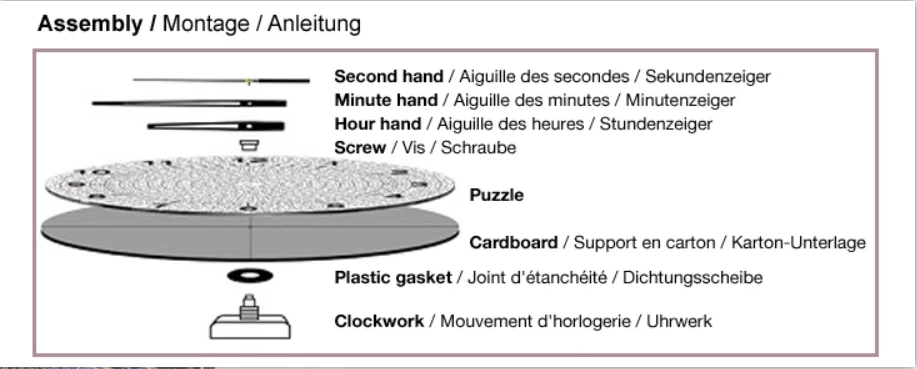 Als de puzzel klaar is heb je een echt werkende klok. Voeg je het inbegrepen klokmechanisme toe en hang hem op waar je maar wilt!