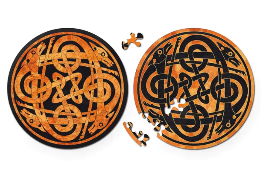 Een heerlijk lastig puzzelplezier. De 2 gelijkaardige motieven op de voor- en achterkant, de ronde verpakking met 2 lichtmetalen deksels maken deze puzzel een leuk en uitdagend cadeau.