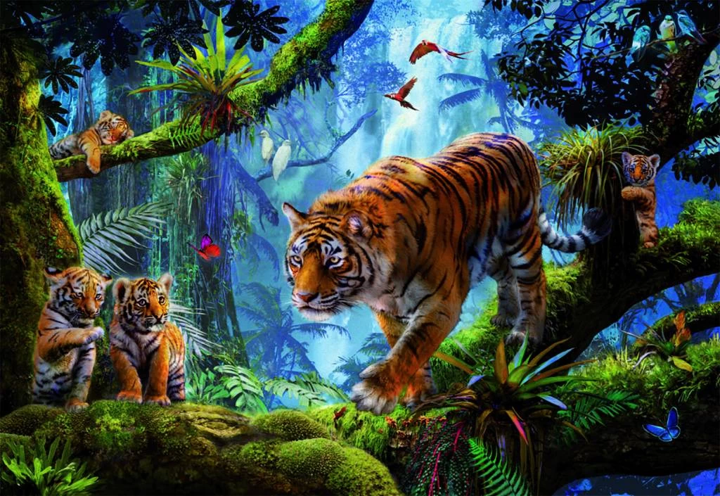 Puzzel van 1000 stukjes – tijgers in de jungle!
