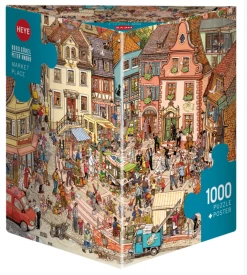 Puzzel ‘De grote markt’ – 1000 stukjes – Verpakt in driehoeksdoos – Heye 29884