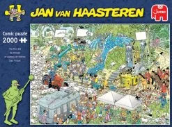 De kunstenaar Jan van Haasteren is de favoriete tekenaar van vele puzzelaars! Zijn typische elementen zoals de haaienvin, de losse tanden zijn terug te vinden op al zijn puzzels. Al gevonden op deze foto?